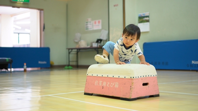 音楽(リズムや曲)に合わせて、体操やダンスを取り入れ、振り付け通りに踊ることや動きをすることができるように支援します。感覚統合の視点を取り入れた運動遊び(器械【マット、平均台等】体操など)を行うことで、全身を動かし、様々な身体の動かし方を身につけられるように支援します。